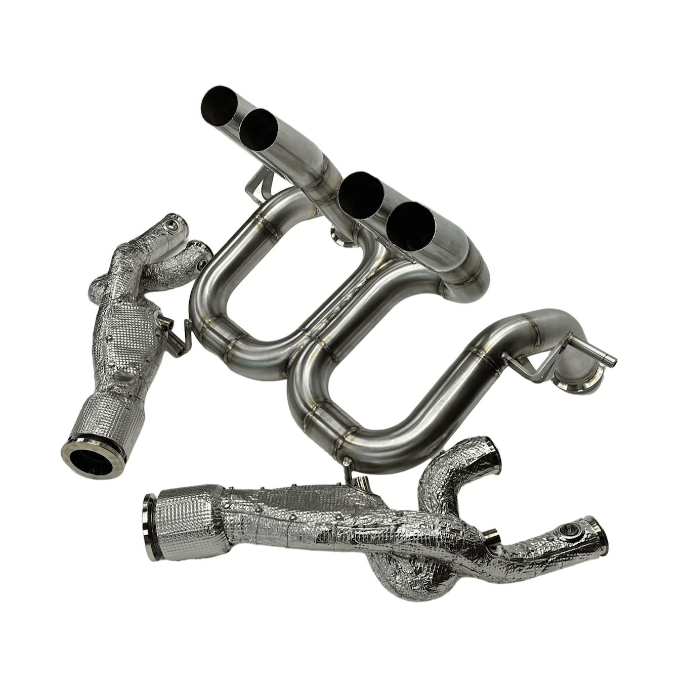 Introducing the Gintani Lamborghini Revuelto Exhaust System, meticulously engineered to deliver unparalleled performance and an aggressive sound profile. Crafted in the USA, this system features stainless steel headers and a robust X-pipe rear section, designed for optimal flow and our distinctive F1 exhaust note. Built in-house from premium 304 stainless steel and hand TIG welded, this exhaust system guarantees exceptional quality and durability. Experience the power of pure sound and performance with Gintani, where innovation meets precision.