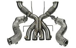 Introducing the Gintani McLaren 765LT Exhaust System, designed for optimal performance and an aggressive sound profile. Precision-crafted in the USA, this system features stainless steel downpipes and an X-pipe rear section, available in both valved and non-valved options to suit your preference. Built entirely in-house from premium 304 stainless steel and hand TIG welded, the Gintani exhaust system guarantees top-tier quality, durability, and a distinctive exhaust note. Elevate your McLaren 765LT with an exhaust system that combines engineering excellence and unmatched performance. All exhausts are built to order. Please allow 10 weeks minimum for item to be available. This is just the exhaust system. Tune sold separately. Made in the USA US 304 Stainless Steel All hand TIG welded Lifetime warranty on all welds 100% perfect fitment Valve and Non-Valved options Items included are Gintani McLaren 765LT rear section and downpipes *Item for track use only! (Tune sold separately)