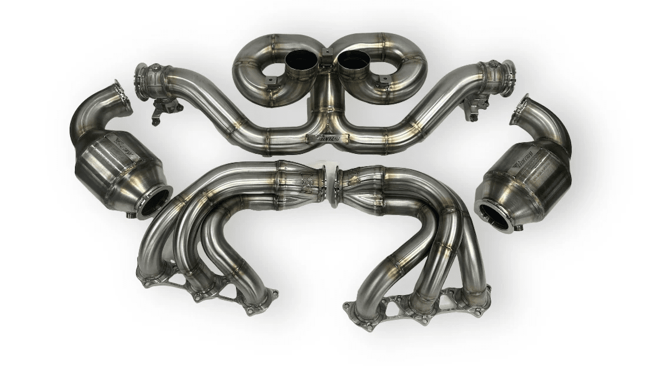 Introducing the Gintani Porsche 992 GT3RS Exhaust System, engineered for unparalleled performance and sound enhancement. Crafted in the USA with precision, this system features stainless steel headers, high-flow catalytic converters, and a valved X-pipe rear section. Experience customizable exhaust tones with valves controlled by the OEM factory actuator, all built in house using 304 stainless steel and meticulously hand TIG welded for exceptional quality and longevity. Elevate your driving experience with the Gintani exhaust, where power meets precision. All exhausts are built to order. Please allow 10 weeks for item to be available. This is just the exhaust system. Tune sold separately. Made in the USA US 304 Stainless Steel All hand TIG welded Lifetime warranty on all welds Valved System Stainless Steel and Titanium options 30 WHP gain exhaust alone, Tune sold separately *Item for track use only!